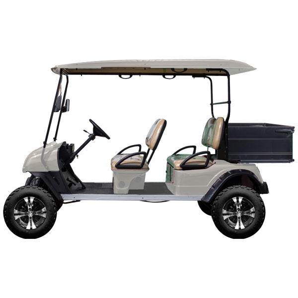 Electric utility car EG2048HCX is built based on EG2048K by changing the rear golf bag kits and the last two rows of seats to long cargo bed. The long