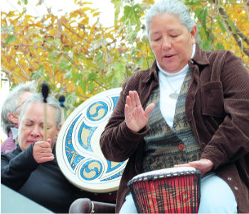 There, Elisa Lucero and Kathryn Vega, who conduct drum circles for community groups, handed each person a drum or a rattle.