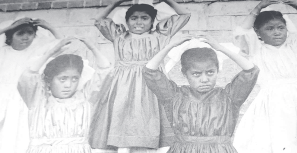 COURTESY | SEACOURT PRINT CENTER Close up of Schwemberger’s photo of nine Diné girls, with Eleanor Chee in the middle and others o...