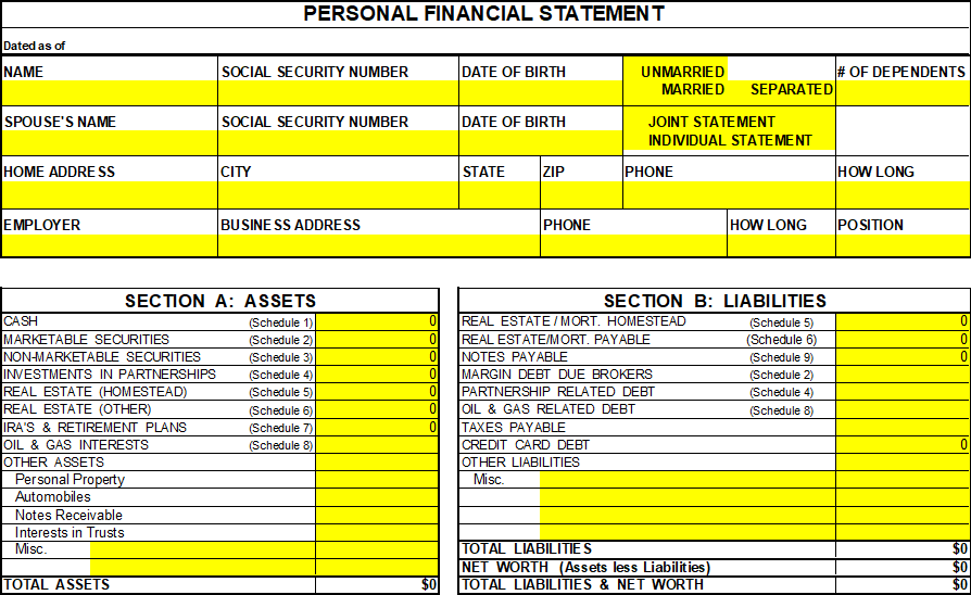 Your Personal Financial Statement will help you calculate your Net Worth and Return on Net Worth. Also, keep in mind that your Personal Financial Statement is required when applying for multifamily loans.
