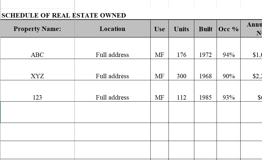 The Schedule of Real Estate Owned will help you track your individual real estate investments.
