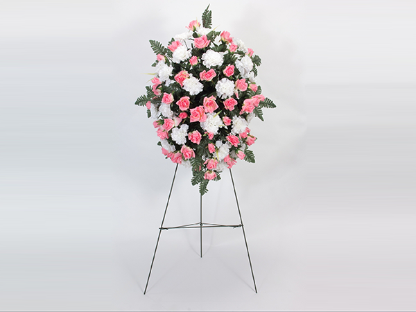 This arrangement consists of a combination of assorted pink flowers on a 22 inch open wreath arrangement.