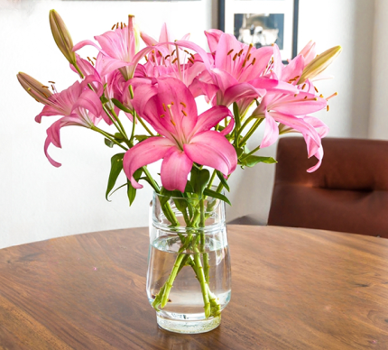 This arrangement consists of pink roses and a mix of white flowers on a spray piece.