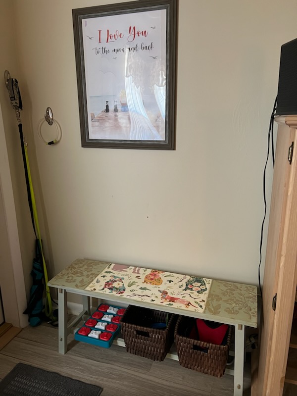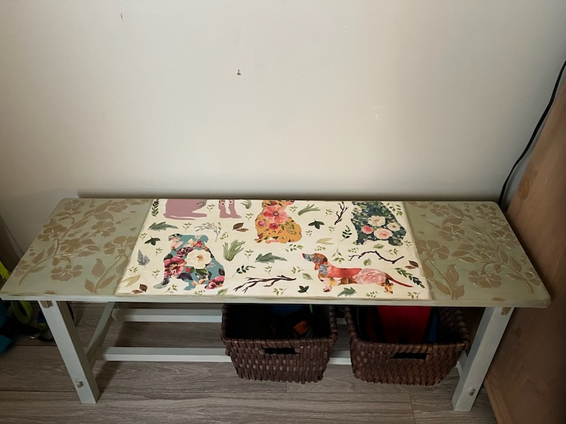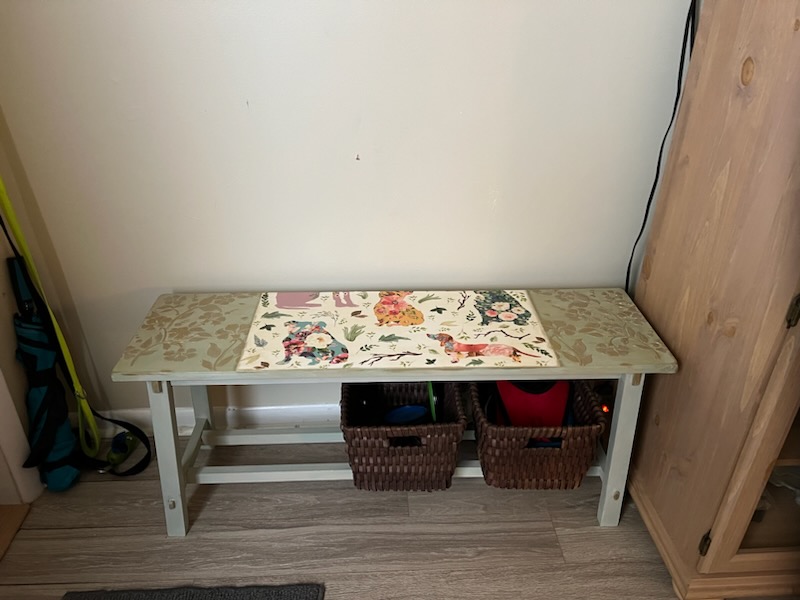 Never in my wildest dreams did I think my bench would turn out like this. I had a thought but Adele had a Vision! I love it so much more because of her talents and expertise.