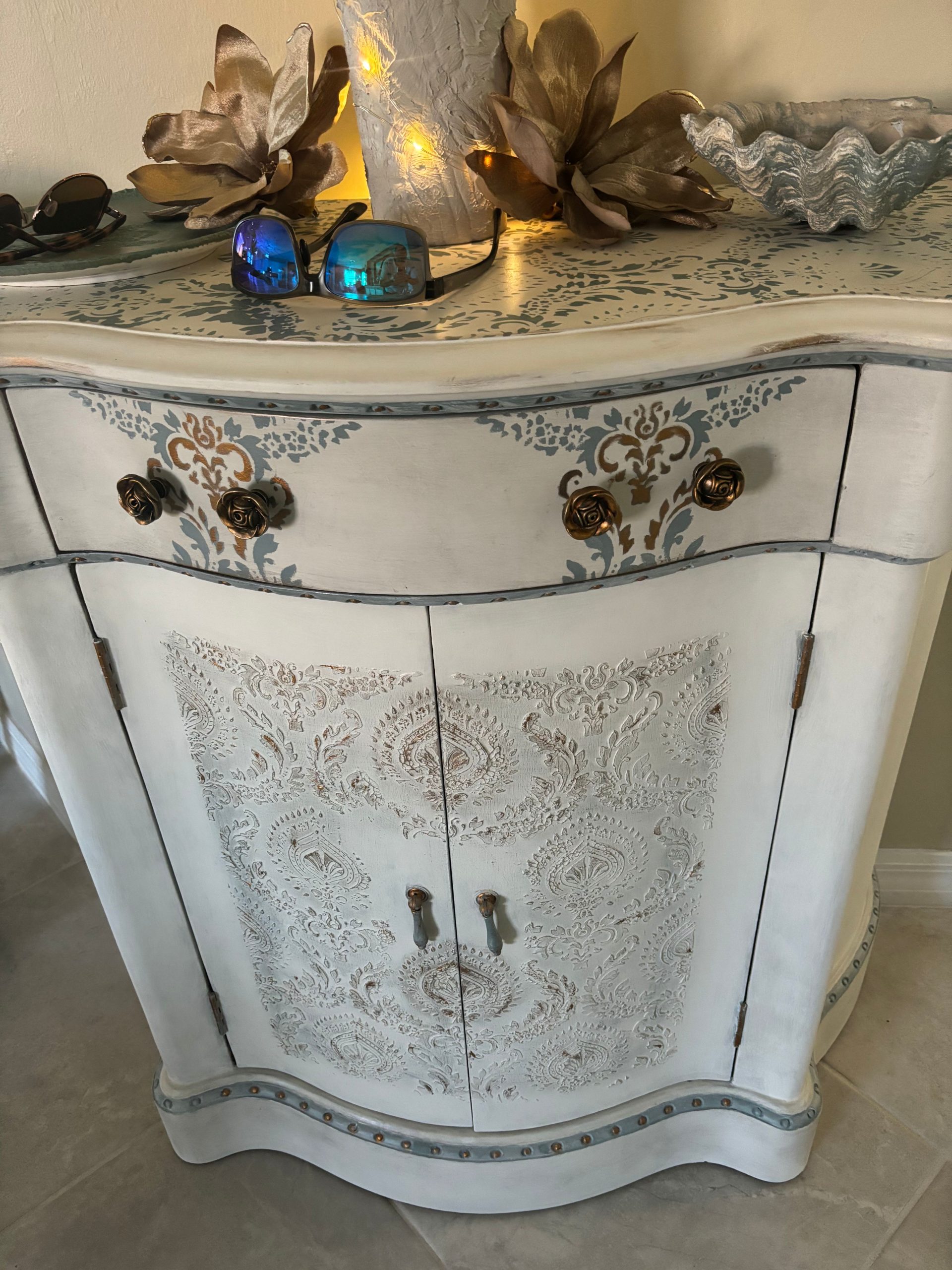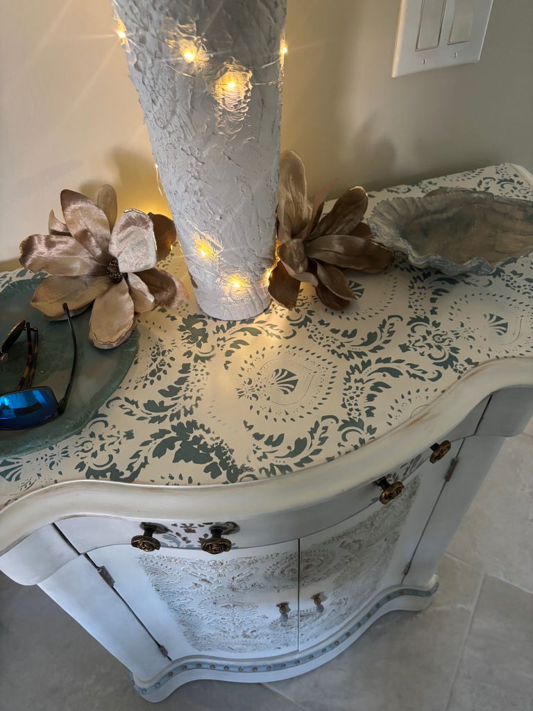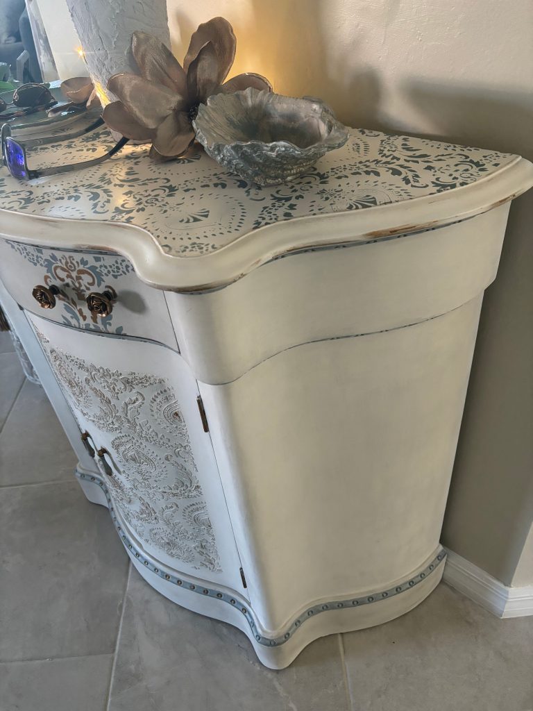 I was looking for a way to bring new life to my dining room table and found Adele online.  Her photos of beautifully painted furniture caught my eye. I immediately reached out to her with a photo of my table and items to use for color inspiration.  Adele brought out details in the table that I had not even noticed before. She nailed it!
