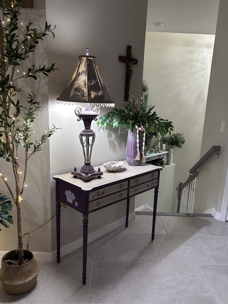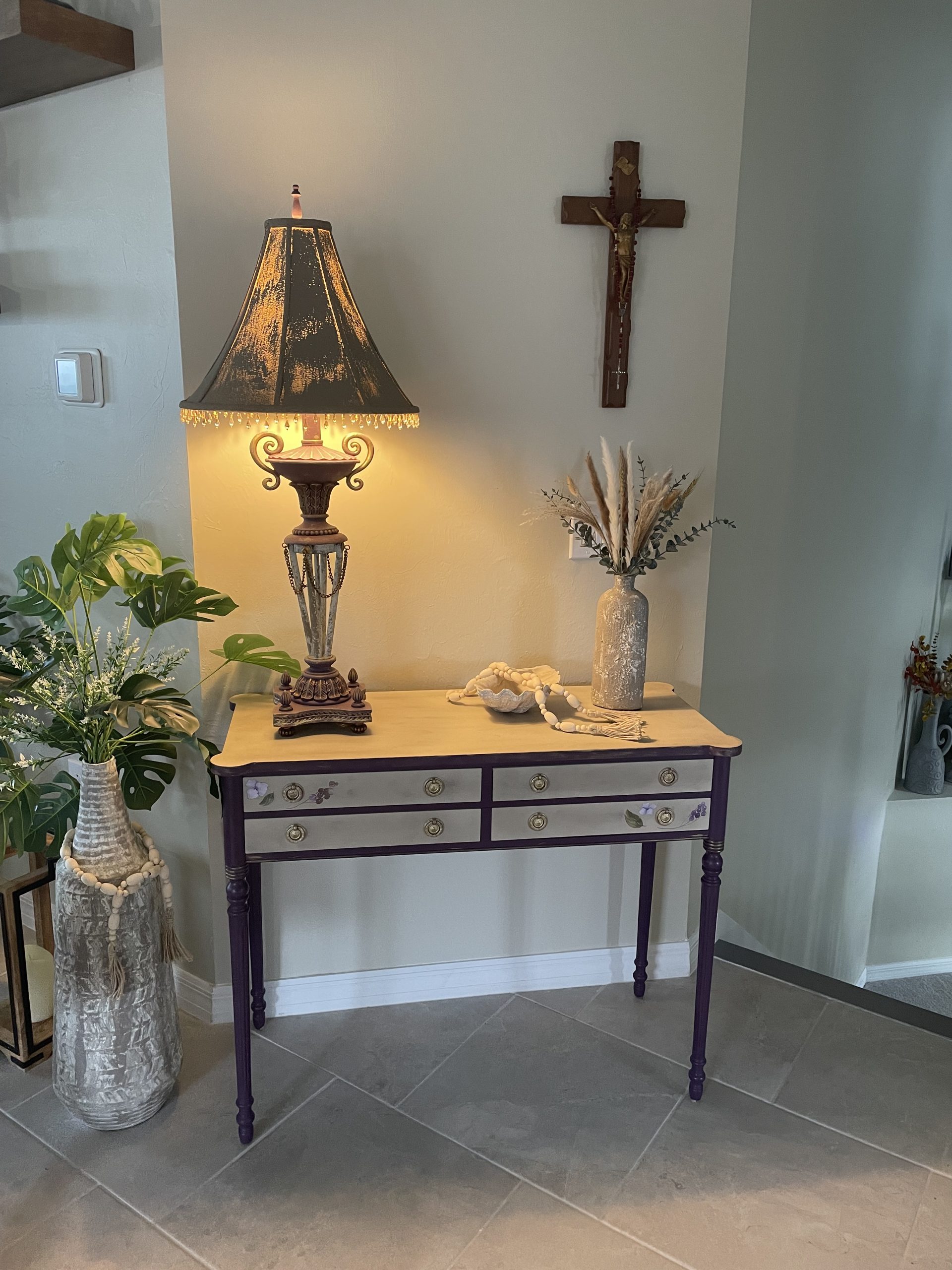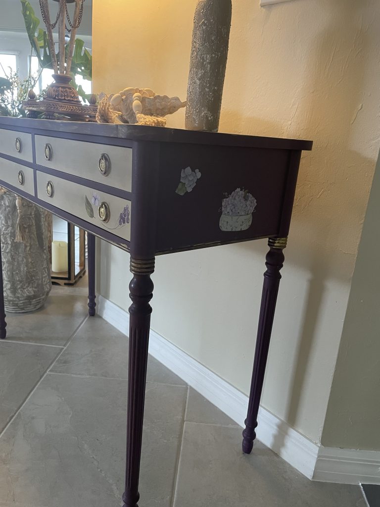 I was looking for a way to bring new life to my dining room table and found Adele online.  Her photos of beautifully painted furniture caught my eye. I immediately reached out to her with a photo of my table and items to use for color inspiration.  Adele brought out details in the table that I had not even noticed before. She nailed it!