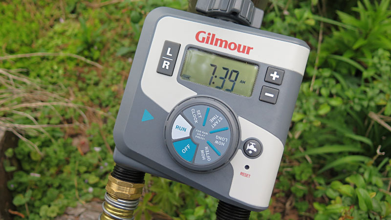 However, you don’t need to pad out into the garden in your slippers and bathrobe. With Gilmour’s Dual Outlet Electronic Timer, you can place the sprinkler where you want it in the evening and set the timer to turn on first thing in the morning. The dual timer allows you to connect two hoses to the same spigot and water the front and back yards simultaneously or one after the other. Watering the lawn for 20-30 minutes once a week should be enough to keep your lawn looking great.