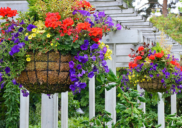 Hanging baskets of flowers can be a finishing, gorgeous touch to any porch or other outdoor space. But don’t limit their charm to just hanging outdoors. Adding hanging flower plants around the