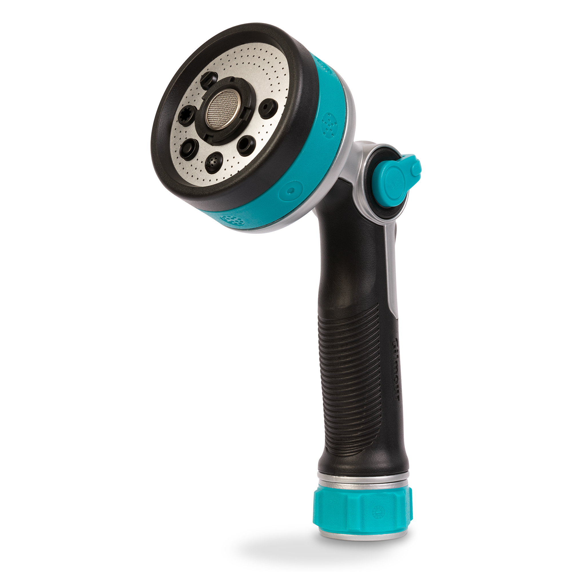 • The Gilmour® Thumb Control Cleaning Nozzle with Swivel Connect™ pivots without twisting the hose, reducing hose kinks by 70%