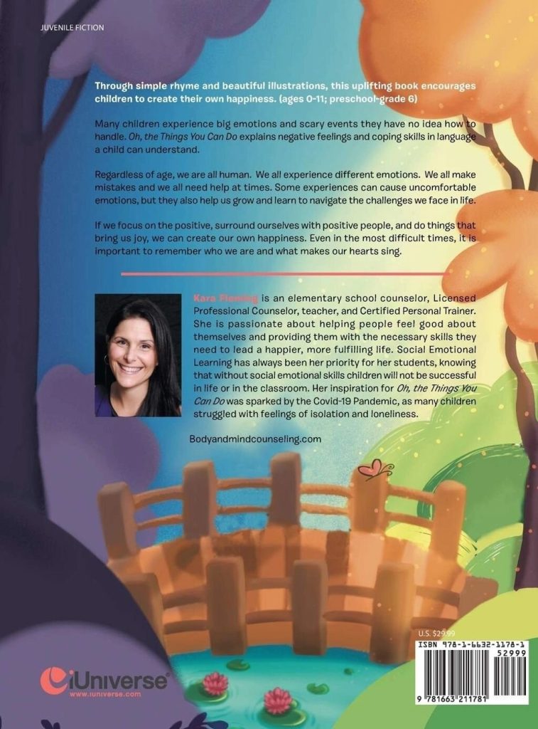 I’m so excited that my first children’s book is published! I hope this book is useful for parents, teachers, and counselors in helping children navigate uncomfortable feelings and unexpected challenges. Through teaching coping skills, showing compassion, and focusing on the positive, we can guide children on the right path to find their own happiness.